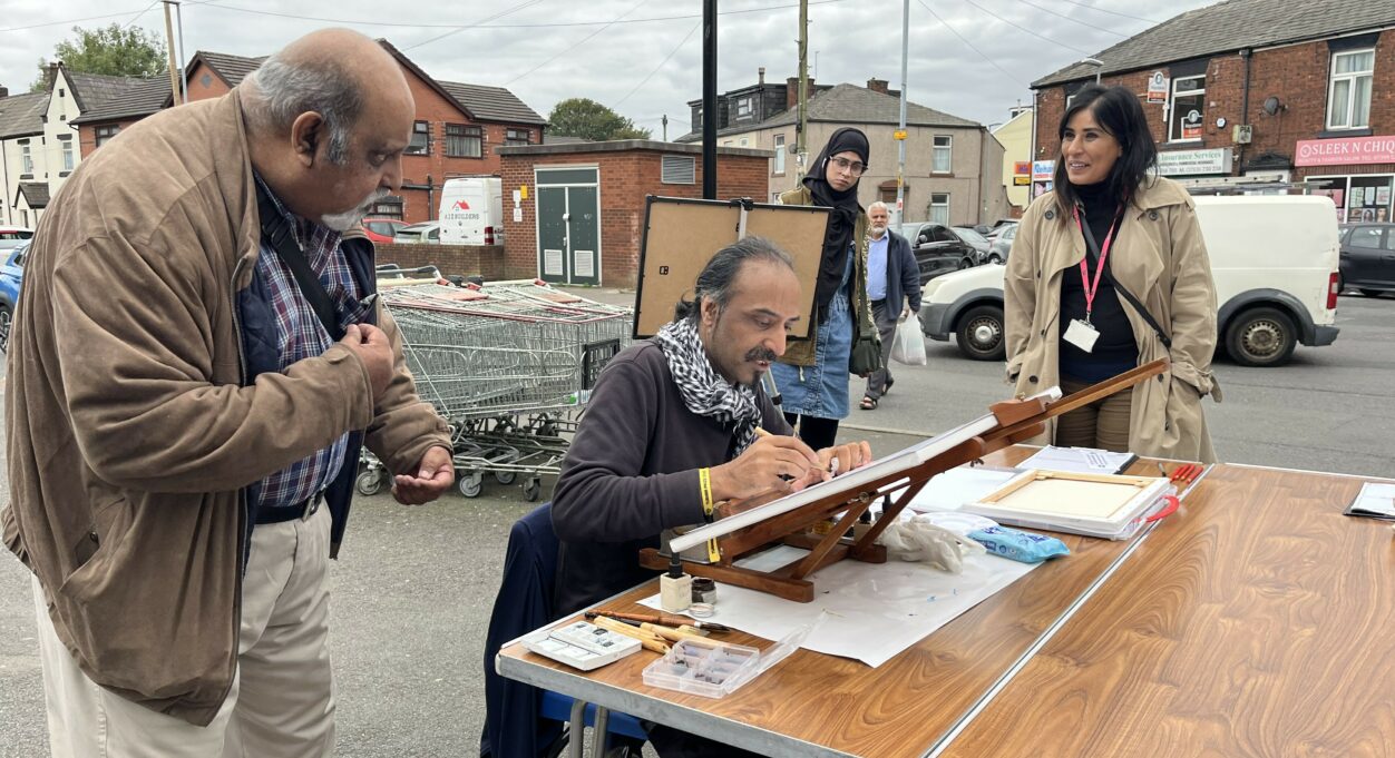 The idea for Community Corner came from the work Culture Coop has been doing with local communities in Rochdale. Something that came up again and again is the Non-Western art is not valued in the same way as Western forms of art. Local communities wanted more exposure for Islamic and South Asian arts and to showcase how it is made. They also felt it was important for the communities themselves, as there is a growing lack of knowledge about traditional skills.